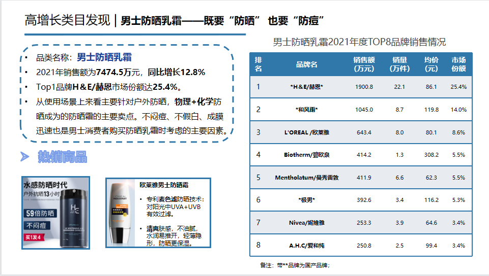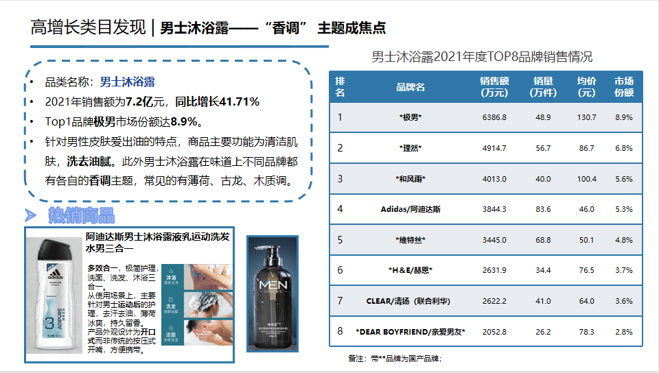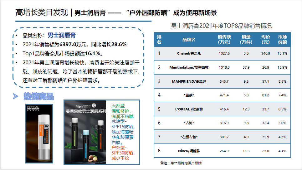 說完了男士洗護的重點品類,咱們再來看看市場中有哪些高增長品類值得關(guān)注。