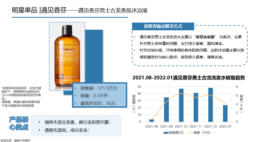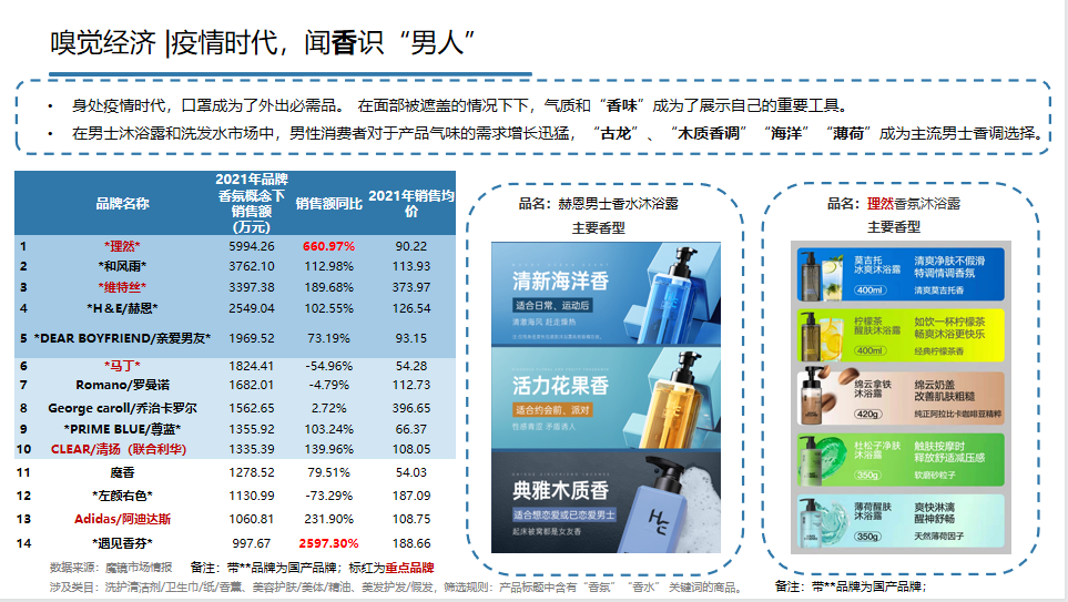 魔鏡發(fā)現(xiàn),男士香氛型沐浴露增長迅速,古龍、木質(zhì)香調(diào)較受歡迎。