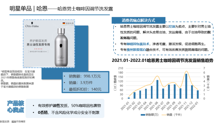 另外,魔鏡也觀察到,一些品牌從特定發(fā)質(zhì)入手,引入特定成分咖啡因,并將控油、防扁塌功作為突出賣點進行展示和內(nèi)容溝通。