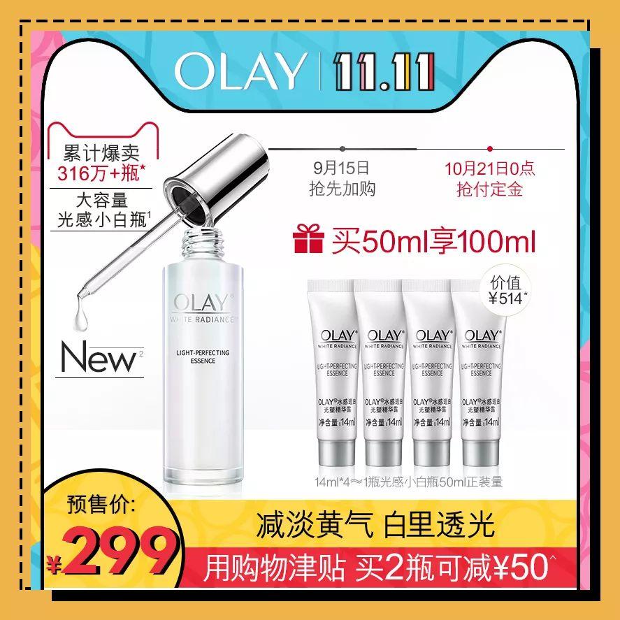 有了歐萊雅,怎么能忘掉玉蘭油?Olay每年貧民窟女孩必?fù)尩拿腊拙A——光感小白瓶。今年依舊靠搶,前4萬預(yù)售減30,前5萬尾款加贈(zèng)14ml小樣。