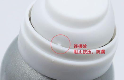 瓶口的噴頭連接處有一根短線阻止按壓,是嚴(yán)謹(jǐn)?shù)?strong>防漏設(shè)計(jì)。第一次使用時(shí)用力按壓,或者用剪刀剪斷即可。