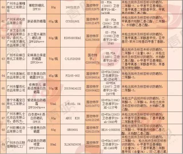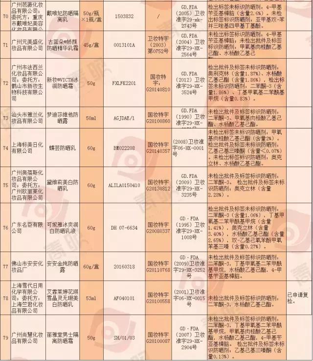 公布了79批次防曬類化妝品不合格的通告。