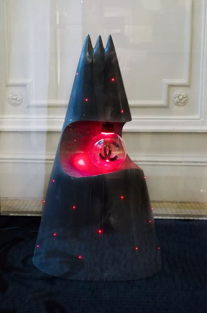 Chanel的圣誕樹是一座正在爆發(fā)的小火山,灰色的山體上有紅色的星星點點,中間則挖空放了一顆有品牌經(jīng)典雙C標(biāo)志的小燈泡。