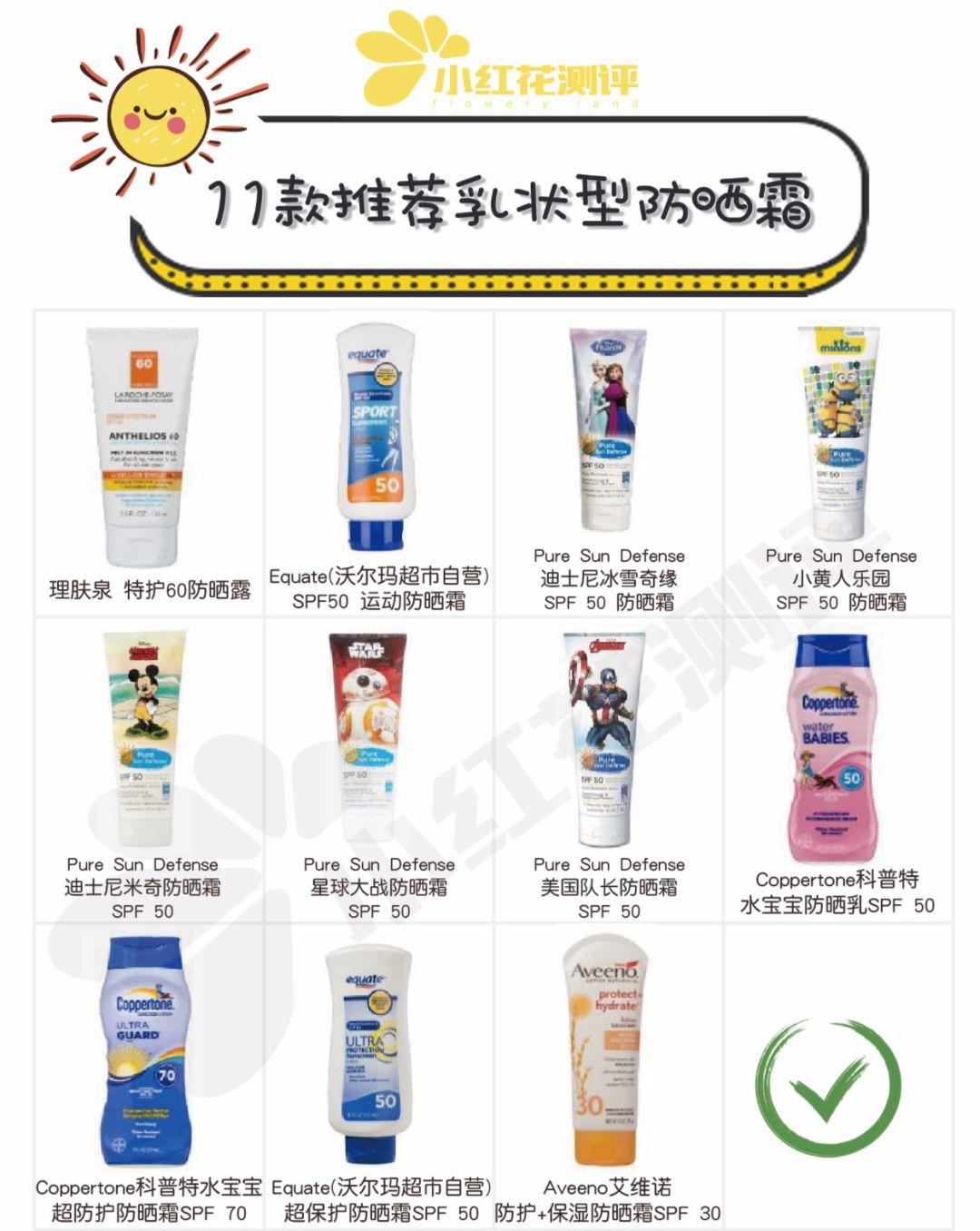 說完問題,下面,小紅花測評(píng)將測試中被被評(píng)為“”的11款乳狀型和3款噴霧型寶寶防曬霜的圖片及產(chǎn)品名稱清單列出來了,供爸媽們看清選購。