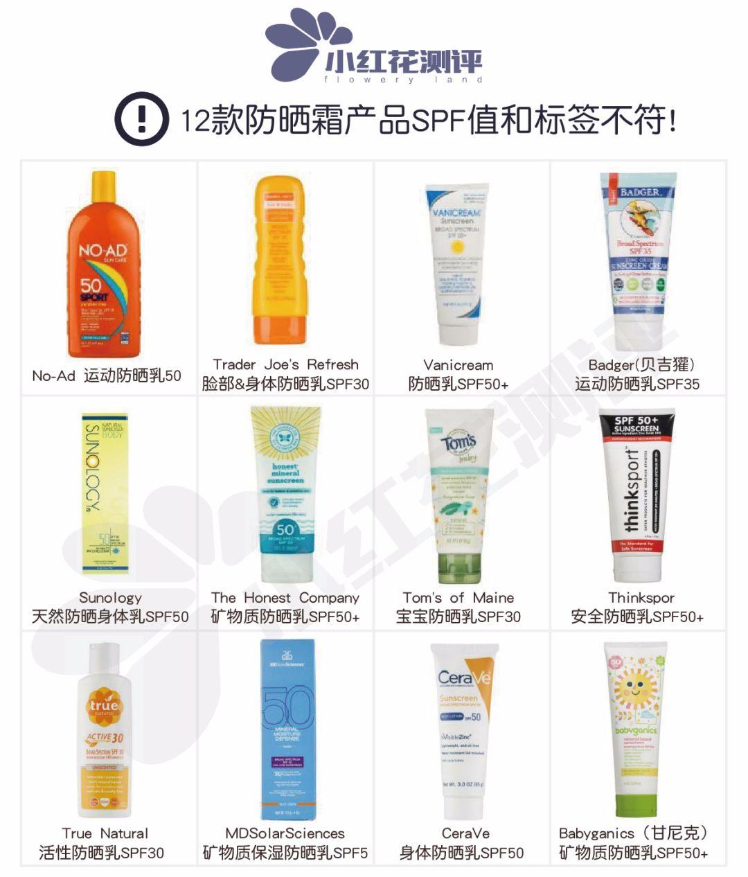 1. 有12款產(chǎn)品的實(shí)際測試SPF值不到標(biāo)簽SPF值的一半!也就是說防曬果不像他們宣稱的那么好。