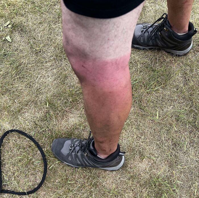 男朋友在徒步時(shí)只給文身做了防曬,事實(shí)證明,防曬霜確實(shí)比襪子有用。