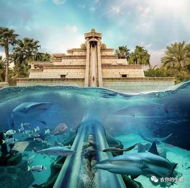 這個(gè)名叫“海神之躍”的滑梯是他們家的招牌,從25米高的塔頂直沖入海底鯊魚(yú)池,體驗(yàn)自由式落體的刺激,全程總共1秒多,刺激吧?!嘿嘿,這是官方照,因?yàn)楸救巳覠o(wú)人敢嘗試……這個(gè)梯在我看來(lái)接近垂直,沒(méi)有90度也有80度吧!
