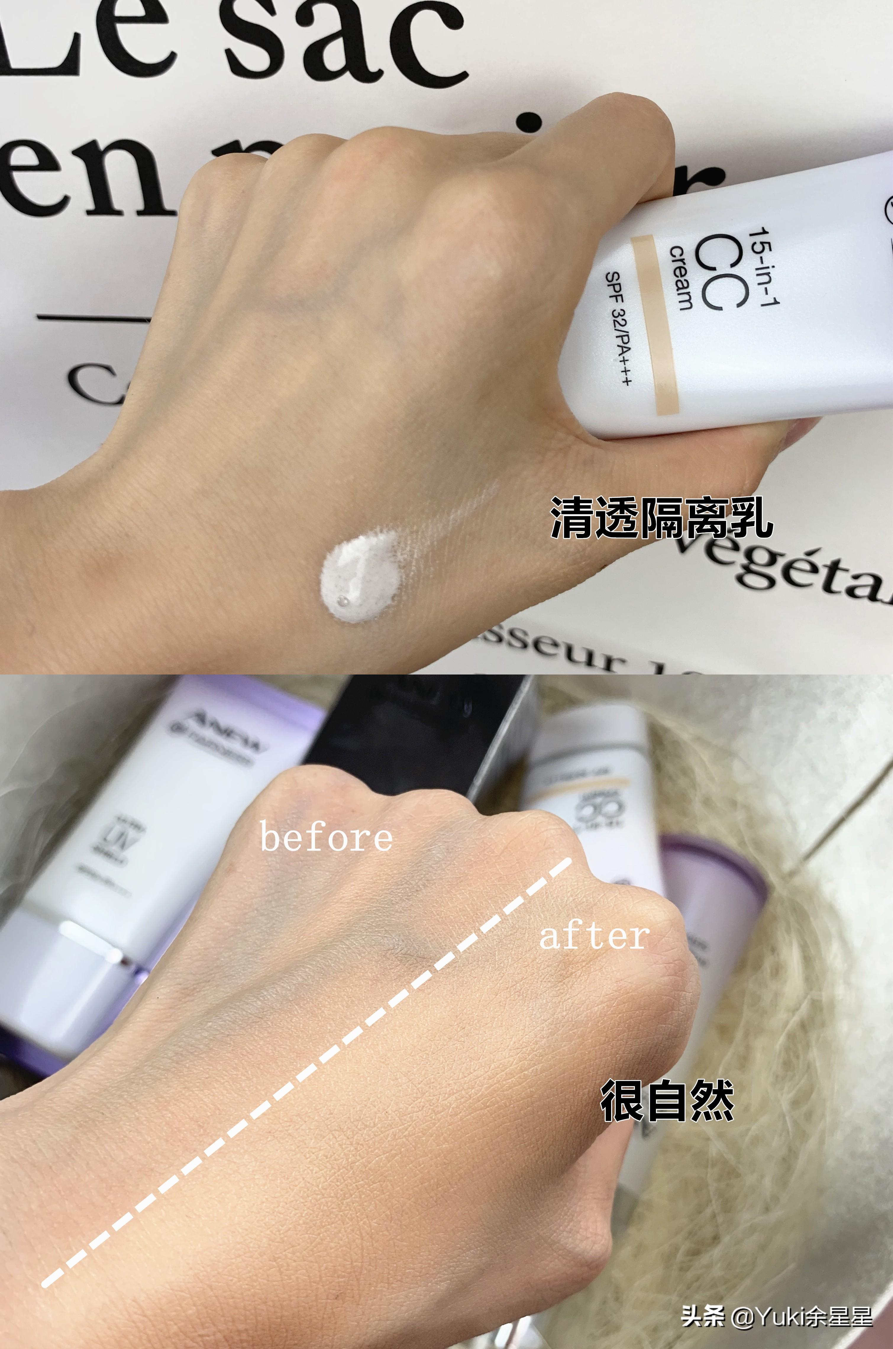 新活美白清透隔離乳就是CC霜啦,15合一的,保濕+防曬+修顏很適合懶人,就是我本人哈哈,有時候出門就只會涂這一個就ok,擠出來的質(zhì)地是白色的,抹開之后是肉色的,顏色肥腸的自然,顯得氣色很好,又不會給人妝感很重的感覺,所謂的偽素顏嘛哈哈~