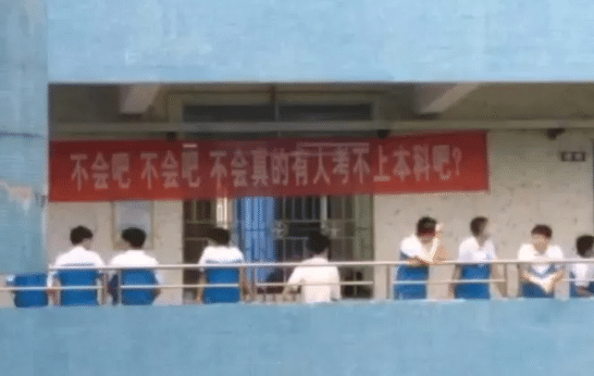 設(shè)置這樣的標(biāo)語(yǔ)特別容易會(huì)引起公憤啊,這么刺激學(xué)生反倒也是一件好事兒,哈哈哈的結(jié)合了當(dāng)下時(shí)事網(wǎng)絡(luò)用語(yǔ),到了這么關(guān)鍵的時(shí)候也該放手一搏了,爭(zhēng)取考上自己想去的學(xué)校,此生不留遺憾。