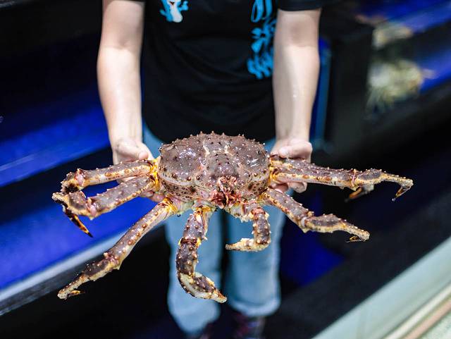 走進(jìn)小海豚,先要在一樓大廳選食材,這是一家專門吃海鮮的餐廳,一樓大廳擺滿了大大小小的缸,各種能吃的海洋生物在這里開大會,活蹦亂跳的迎接我們的到來,尤其看這帝王蟹,新鮮生猛活力十足。