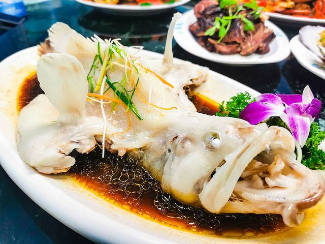 清蒸石斑魚強(qiáng)烈推薦,在三亞,這道菜應(yīng)該是很大眾的了,首先就是一點都不腥氣,魚本來就是很新鮮的,肉質(zhì)也很嫩,夾一塊魚肉,然后蘸點湯汁,不僅香嫩,而且爽滑,味道好極啦,我其實很少吃魚,但阿浪家加工的清蒸石斑魚,我一個人吃了半條。