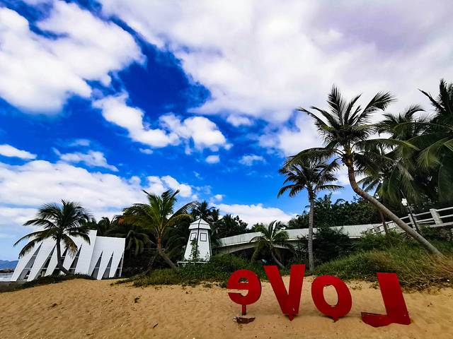 我們來到天涯海角的那天,天氣太好了,天藍(lán)海藍(lán)沙白椰樹綠,這里隨手一拍都是風(fēng)景大片。不過來到這里除了看石頭、看海,這里還是婚紗攝影基地哦,因為浪漫的元素太多了,就算不拍婚紗照,愛拍照的話,也能在這里找到很多網(wǎng)紅打卡拍照地,我們找到了,你找到了嗎?