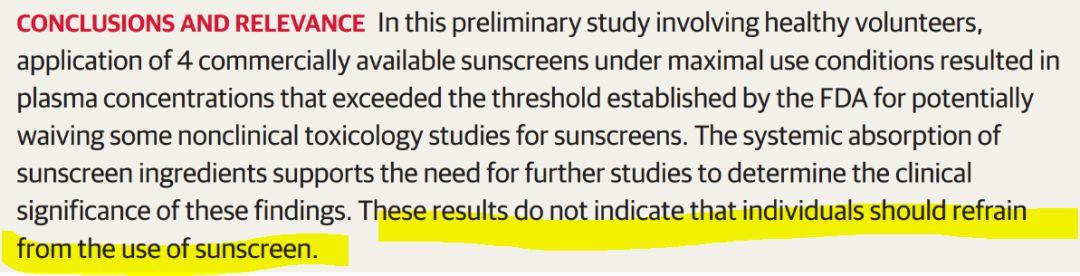 關(guān)于這一點作者已經(jīng)明確在論文結(jié)論中闡明:這項結(jié)果并不意味著應該拒絕使用防曬霜。