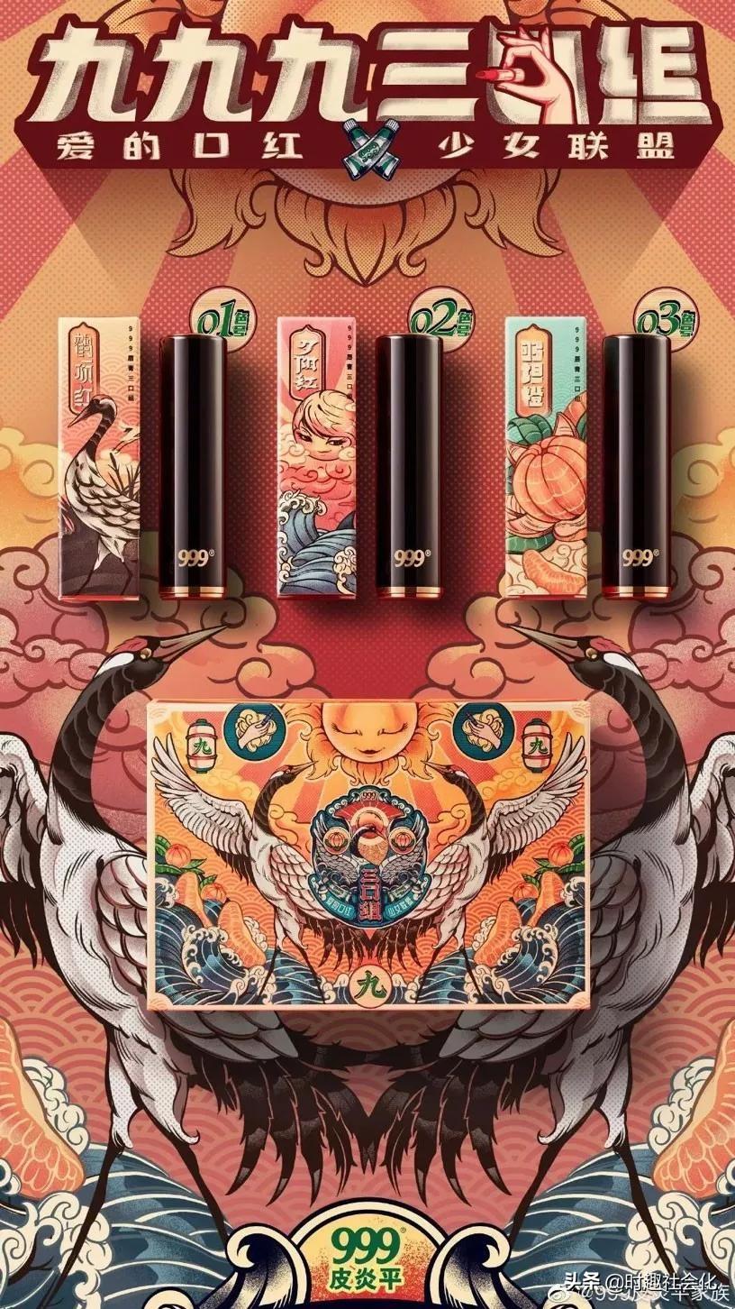 8月13日,999皮炎平發(fā)布了一組跨界口紅產(chǎn)品,并為推出的三種名為“鶴頂紅、夕陽(yáng)紅、夠坦橙”的口紅色號(hào),組成「999戀愛止癢三口組」??诩t一經(jīng)發(fā)布加上復(fù)古摩登的海報(bào),瞬間引來(lái)網(wǎng)友們的大量關(guān)注討論。