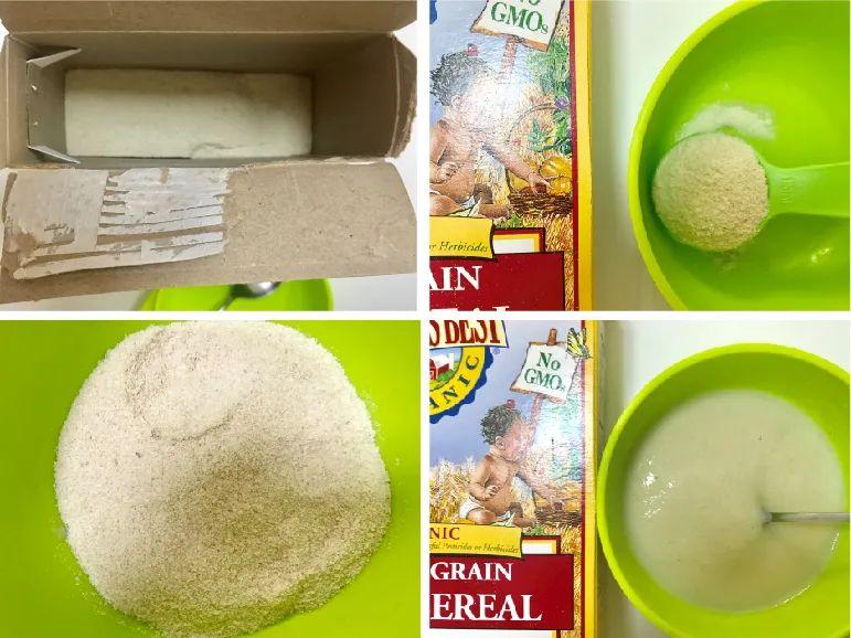 因為包裝的原因,開袋后能聞見米粉味和紙盒味混合在一塊的味道。另外,這款米粉是糙米米粉,顏色會偏黃像小麥色,聞起來有些米糠的味道。沖調(diào)后質(zhì)地偏稀??诟杏忻紫阄叮侍鹞堵远?。