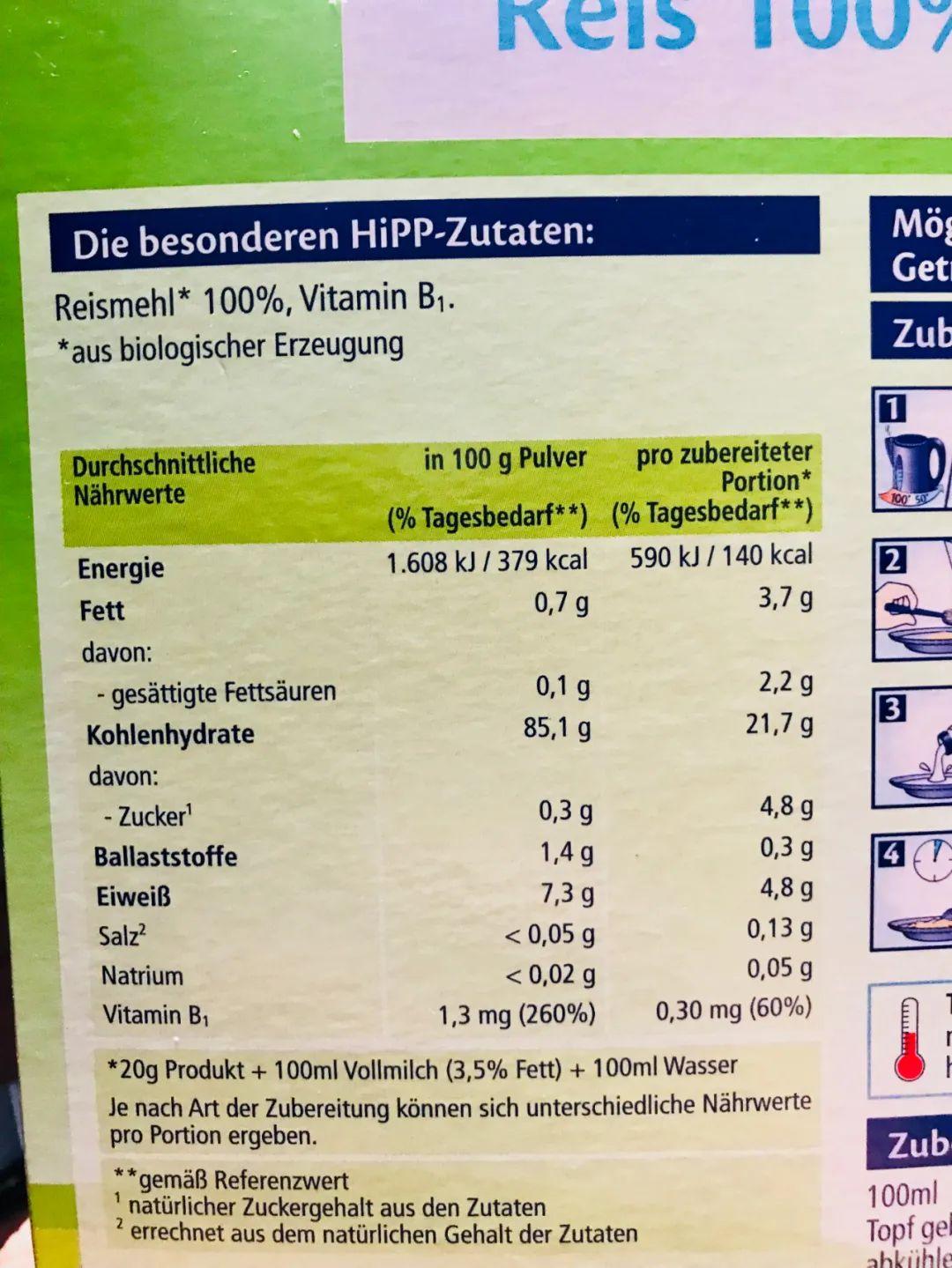 后再提醒一下大家,德國喜寶原味大米粉沒有經(jīng)過鐵強化!美國禧貝有機糙米米粉按推薦食用量鐵含量低!前者好配合其他含鐵輔食輪流吃,后者好根據(jù)實際情況加大每餐食用量。