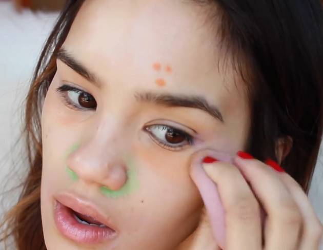 3. 鼻翼兩側(cè):鼻翼兩側(cè)如果只靠膚色的遮瑕仍舊遮不住時,可以加一點綠色的遮瑕膏。