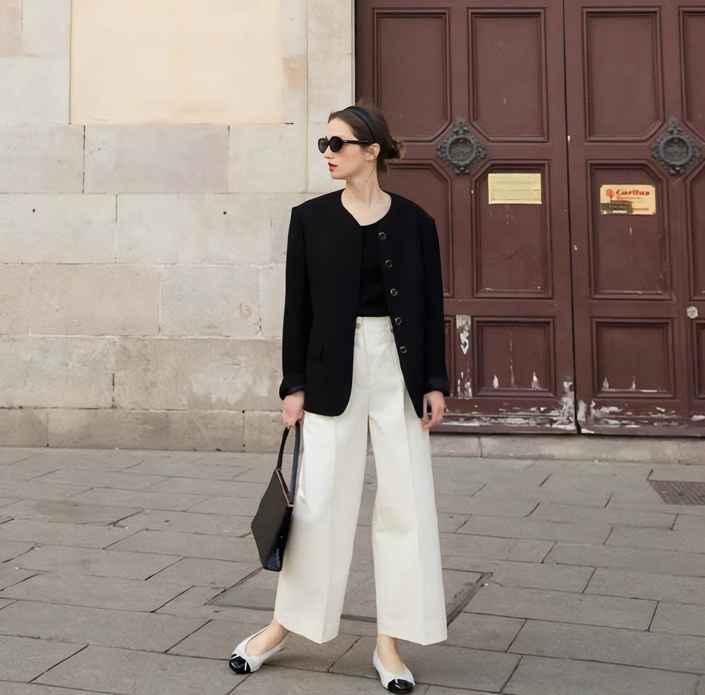 像黑白拼色的單鞋,也是小香風的經(jīng)典標簽。點綴在極簡黑白配中,屬于女人的豐盛瞬間滿溢??此坪唵?,卻有實力支撐。