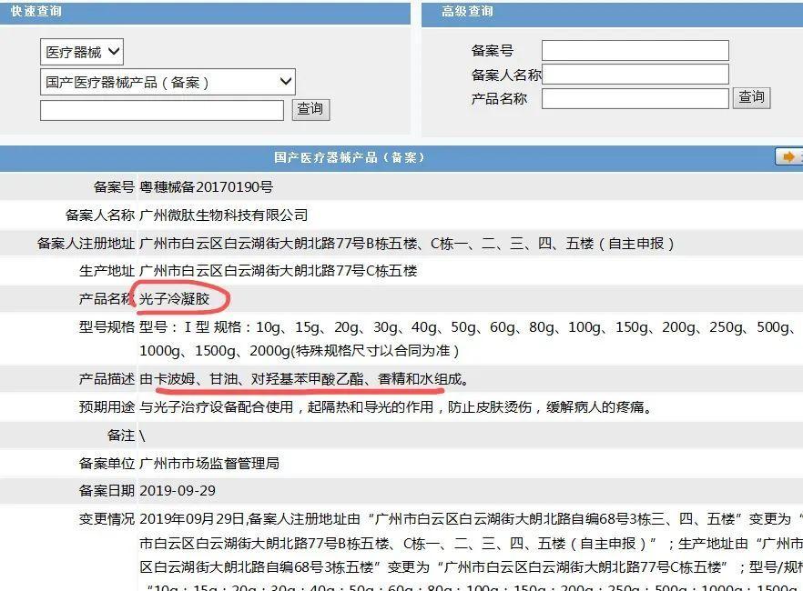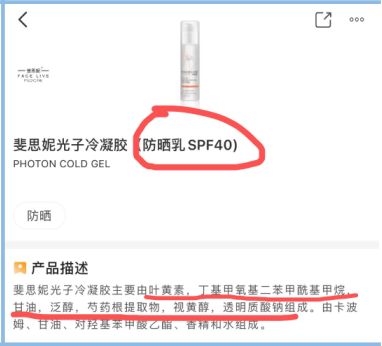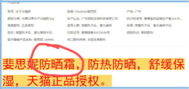 4) 械字號(hào)備案的一個(gè)光子冷凝膠,居然以防曬霜的名義銷(xiāo)售。按照化妝品法規(guī),防曬霜必須取得化妝品的特殊用途許可證,必需備案在化妝品類(lèi)目下。