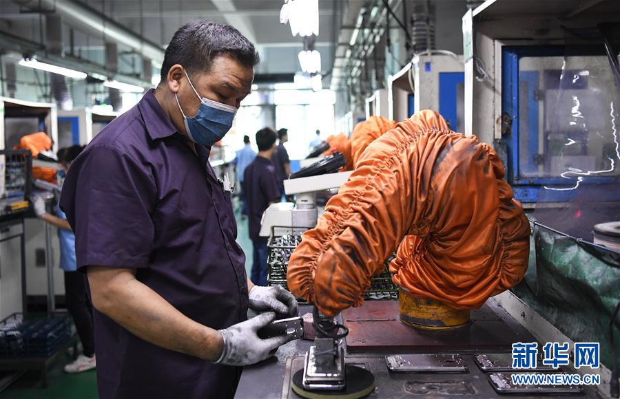 這是位于廣東東莞長(zhǎng)安鎮(zhèn)的華茂電子集團(tuán)的手機(jī)殼生產(chǎn)車間(7月16日攝)。 新華社記者 鄧華 攝