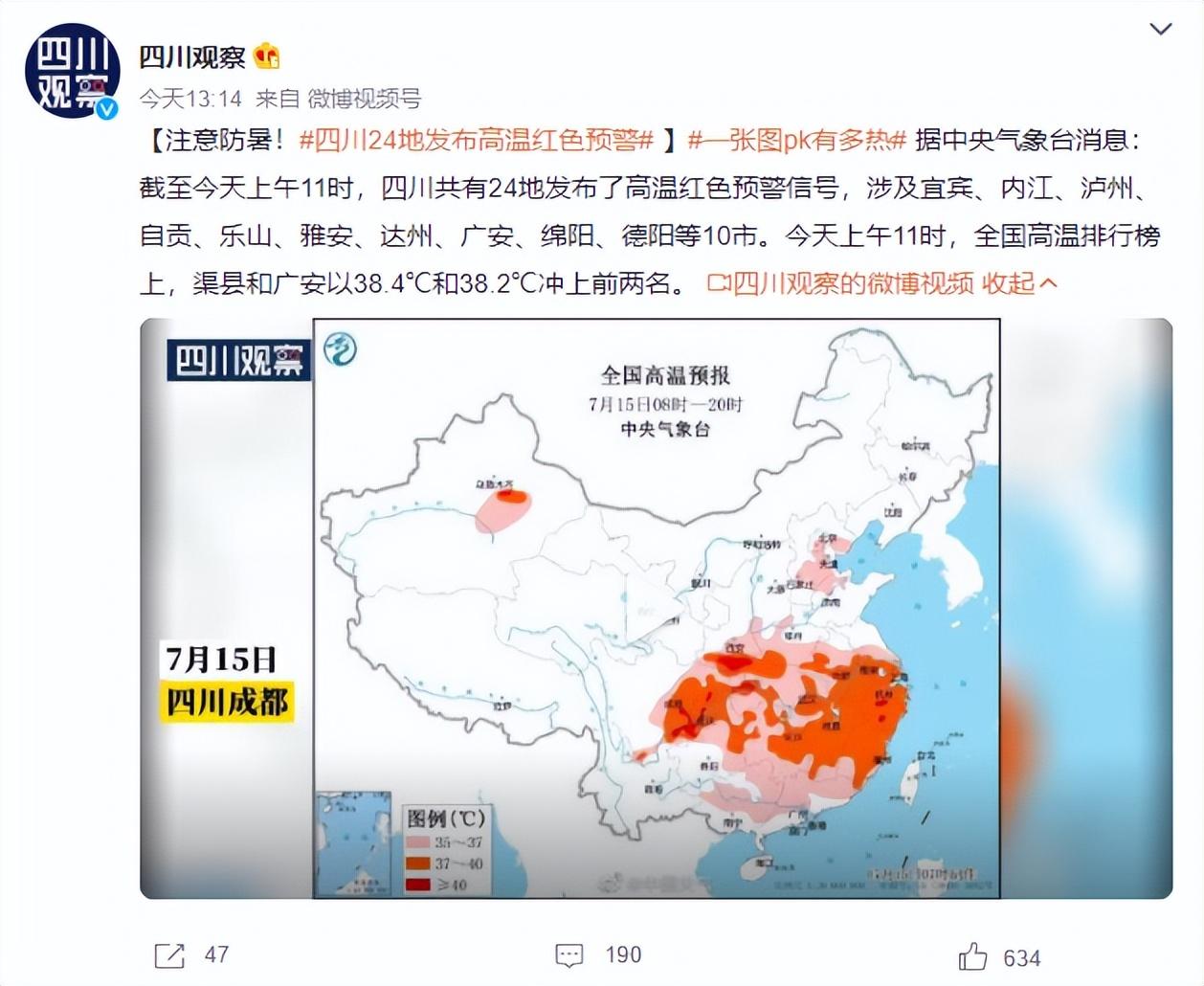 僅僅過了幾天時間,四川部分地區(qū)的氣溫再創(chuàng)新高,四川瀘州的氣溫突破41℃,其中古藺縣的氣溫甚至高達41.8℃。