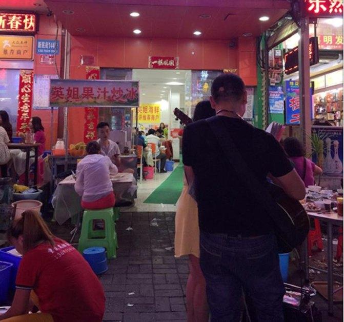 也是一次意外吧,在玩陌陌的時(shí)候上面竟然推薦了一家海鮮加工店,可能就是因?yàn)檫@個(gè)原因,更加確定了我的信心、當(dāng)我拿著海鮮走到門口的時(shí)候我就已經(jīng)知道我的選擇是對(duì)的,等加工的人都做在門口等待著,在稱海鮮的時(shí)候旁邊的一個(gè)游客問我就不是餐廳的服務(wù)員帶我們?nèi)ベI的海鮮、這一問我都已經(jīng)蒙了、還有這樣的好事么,服務(wù)員會(huì)帶著我們?nèi)ベI海鮮,后才知道可以提前來叫服務(wù)員帶著去買海鮮,畢竟他們接觸的多會(huì)挑選一點(diǎn),突然就好后悔,只怪自己攻閱沒有做到為了,,,門口還有帥哥在唱歌呢,的好聽,具體多少錢一首歌就不知道了,,,