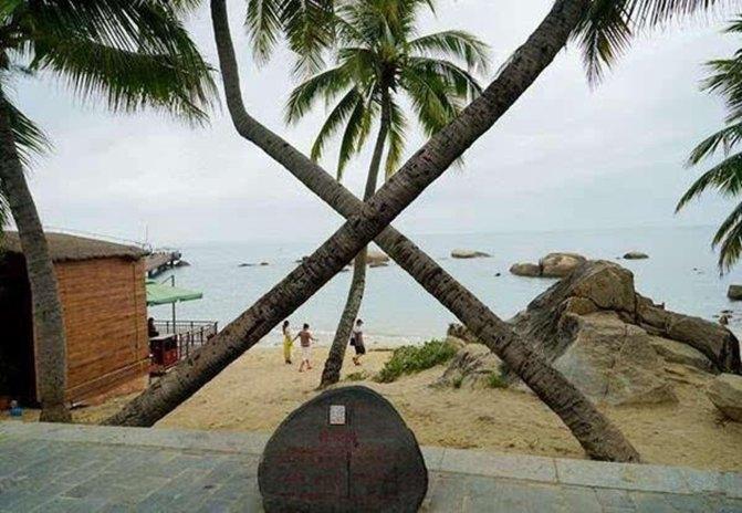 情侶樹,這是交叉在一起的兩顆椰子樹,成為了恩愛相依的象征。
