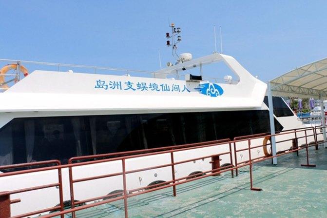 這個(gè)就是要帶我們是上蜈支洲島的船了,特別要注意的一點(diǎn)是暈船的盡量坐中間一點(diǎn),到達(dá)島上的時(shí)間大概在半個(gè)小時(shí)左右,坐中間的話會(huì)比較舒服一點(diǎn),