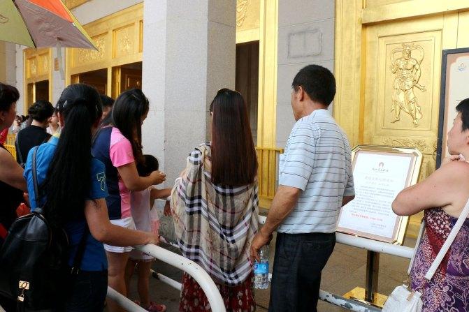 為了跟大慈大悲的觀世音菩薩來一次近距離的接觸、只好在這里慢慢的排隊(duì)了、在里面是不可以拍照的、聽解說員是這樣說的,里面的各路菩薩都是開過光的,如果你拍照了的話回家是要把他供起來的,