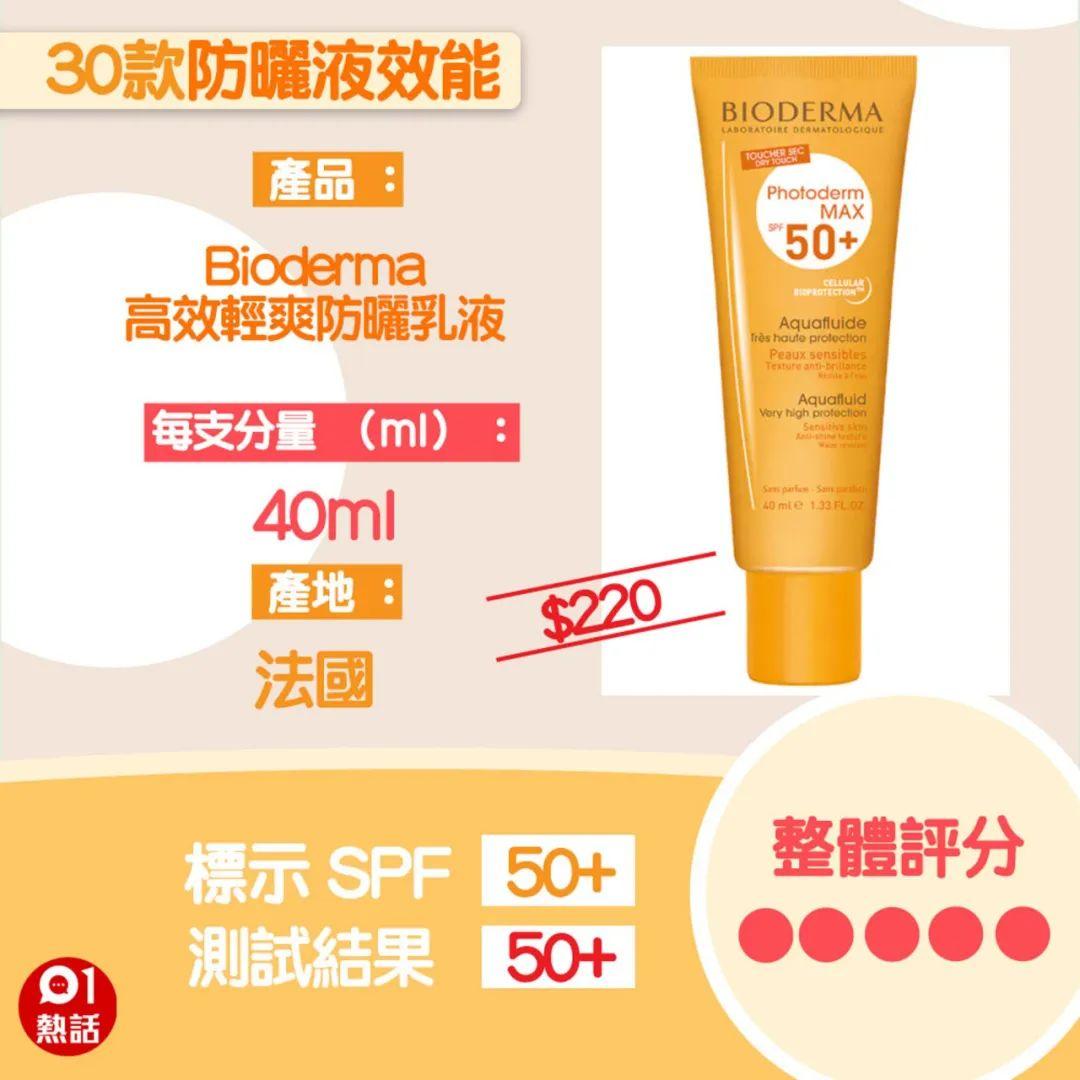 16款極高度保護(hù)的防曬產(chǎn)品(SPF50+)中,就只有「Bioderma」高輕爽防曬乳液符合歐盟要求。SPF值為87.2,是所有測試樣本中高的。