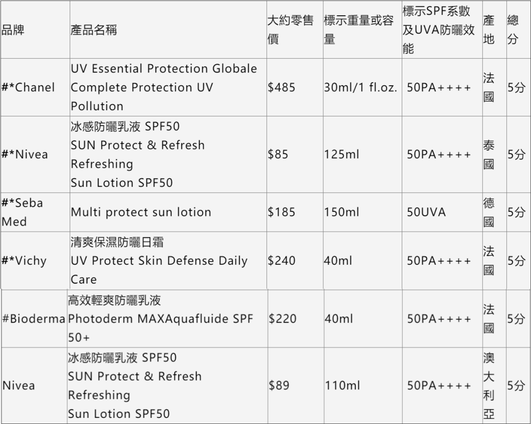 香港消委會(huì)測試滿分的6款防曬用品