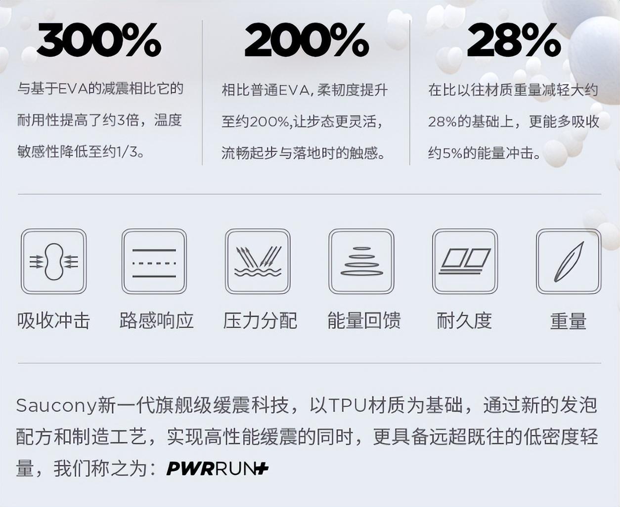 PWRRUN可以理解為調(diào)教更好的EVA材料,相比傳統(tǒng)EVAPWRRUN具有更好的反饋和更佳的耐用性。