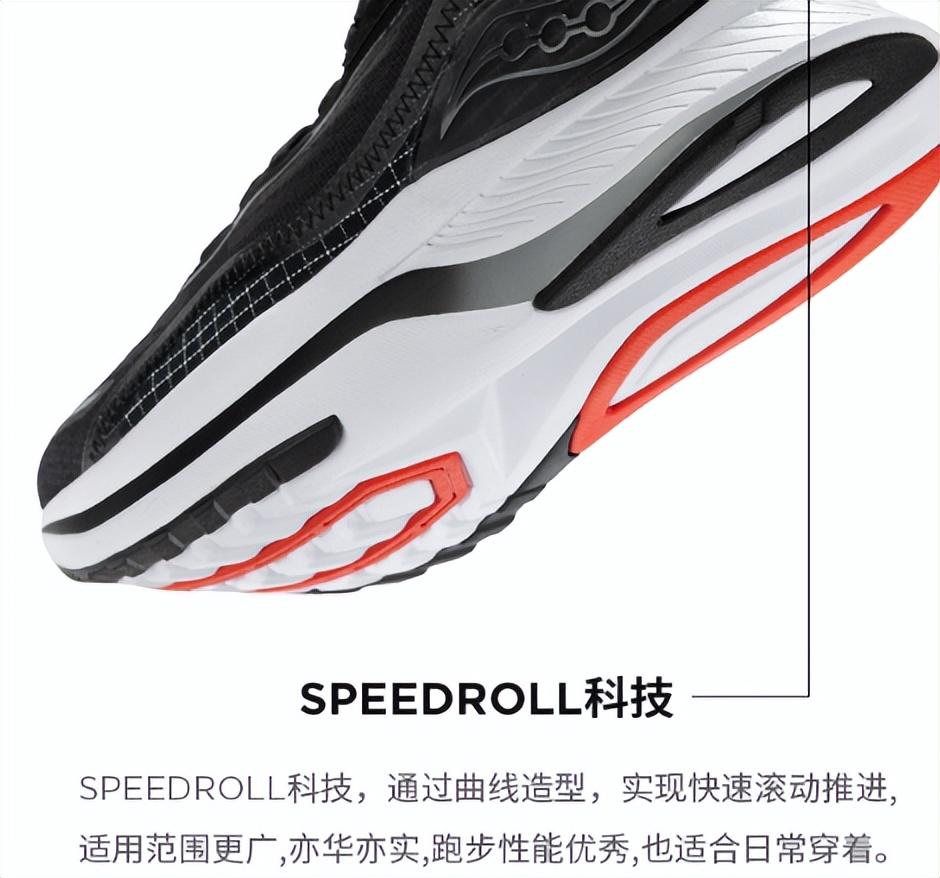 配置:固定帶設(shè)計(jì)+透氣MONO紗?,SPEEDROLL 快速滾動理念+270°環(huán)繞TPU+PWR VIZI科技中底,橡膠大底,重量:42.5碼,328g。坡差:8mm。