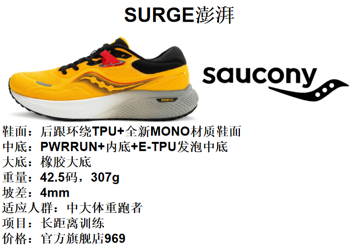 作為鞋型,SURGE澎湃一直被跑友詬病血統(tǒng)不純,但是鞋子不是用來穿的嘛,性能才是評判一雙跑鞋的標(biāo)準(zhǔn)。澎湃的續(xù)航能力雖然沒有勝利系列那么好,但是十公里以下的訓(xùn)練,擁有的緩震性能,更何況價格優(yōu)勢在那擺著呢,適合中大體重跑者日常訓(xùn)練。