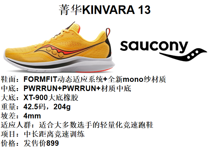 配置:FORMFIT動態(tài)適應(yīng)系統(tǒng)+全新mono紗材質(zhì)鞋面,PWRRUN+PWRRUN+材質(zhì)中底,XT-900大底橡膠。重量:42.5碼,204g。坡差:4mm。