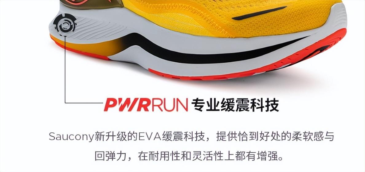 全新升級的工程網(wǎng)眼鞋面更加的舒適透氣,中足固定帶設(shè)計(jì)提升了鞋面的包裹性。中底繼續(xù)采用??Saucony的??PWRRUN +材質(zhì)泡棉,具有極好的緩震果和舒適性,鞋身坡差也由8mm升級到了10mm,滾動能大幅度提升。大底的防滑紋路也進(jìn)行的更新升級。
