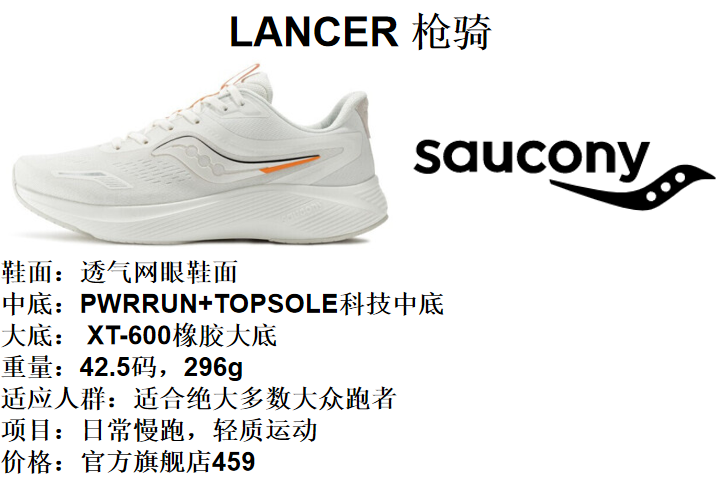 鞋面親膚透氣,中底軟彈還有韌勁,大底在部分區(qū)域進(jìn)行加固。作為索康尼基礎(chǔ)緩震跑鞋,LANCER 槍騎的鞋身設(shè)計(jì)舒適,中底也相對軟彈,而且價格實(shí)惠。適合慢跑,輕量運(yùn)動,日常穿搭。