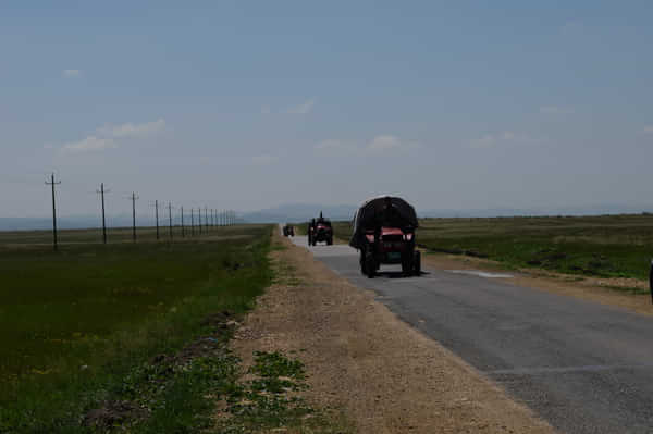 13:00 離開張家口,繼續(xù)上路(G6轉G207),前往閃電河景區(qū)。據(jù)網(wǎng)友說草沿天路的路線是從張北南出來,左轉西側G207國道向南,到野狐嶺后,看到蘇蒙烈士紀念碑后,左右各有一條小道,有牌子-百里壩頭風景線,就是草原天路了( 向樺皮嶺方向就對了)。不過我們開始一段可能走得不對,走了二、三十公里的土路,隨后轉入S242省道。行駛在草原天路上,一路賞美景。