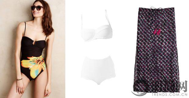 花邊比基尼,$141,Marysia;復(fù)古高腰泳褲,$141,Marysia