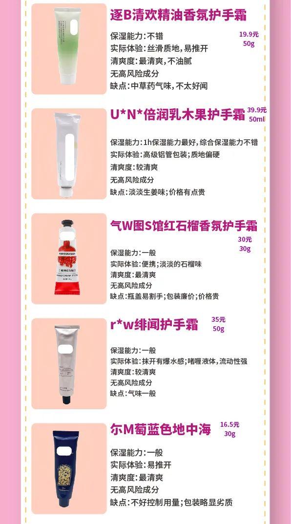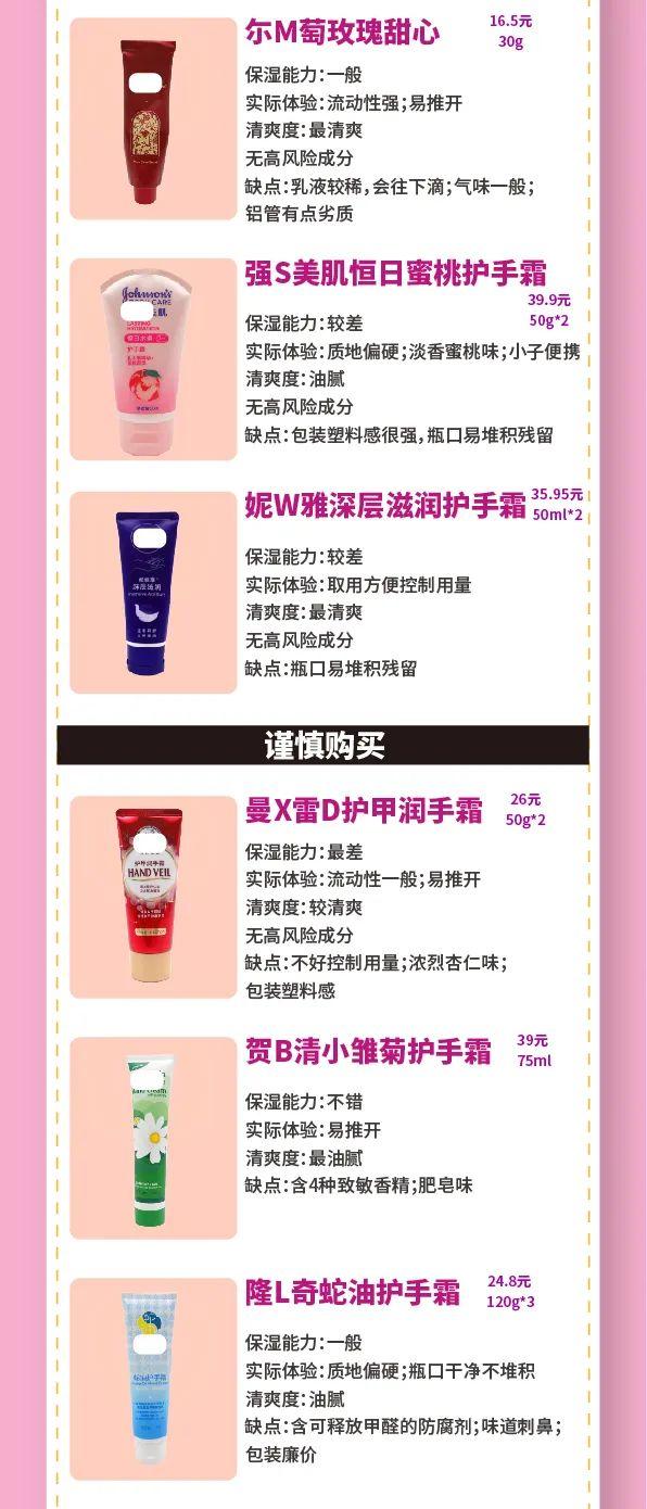 總結(jié)手的角質(zhì)層比較厚,對外界的刺激物沒那么敏感,所以花爸這次沒有送檢護手霜。