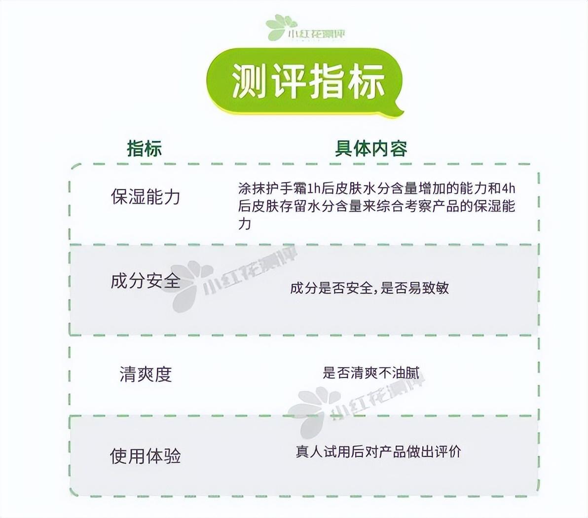測評指標花爸將根據(jù)保濕能力、成分性、清爽度、其他使用體驗四個角度,測評19款護手霜,并根據(jù)不同人群特點推薦,供大家選擇。