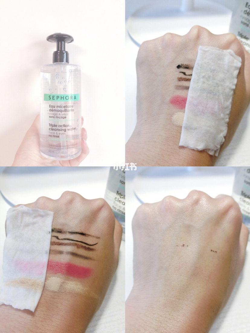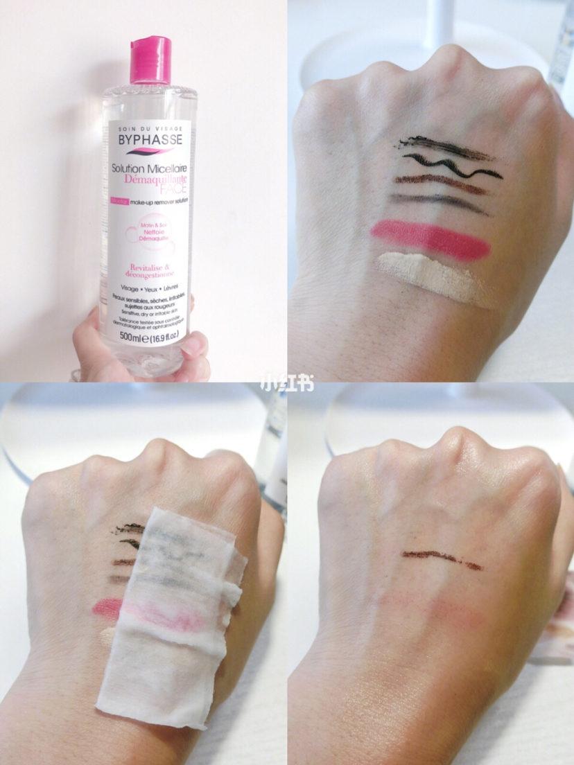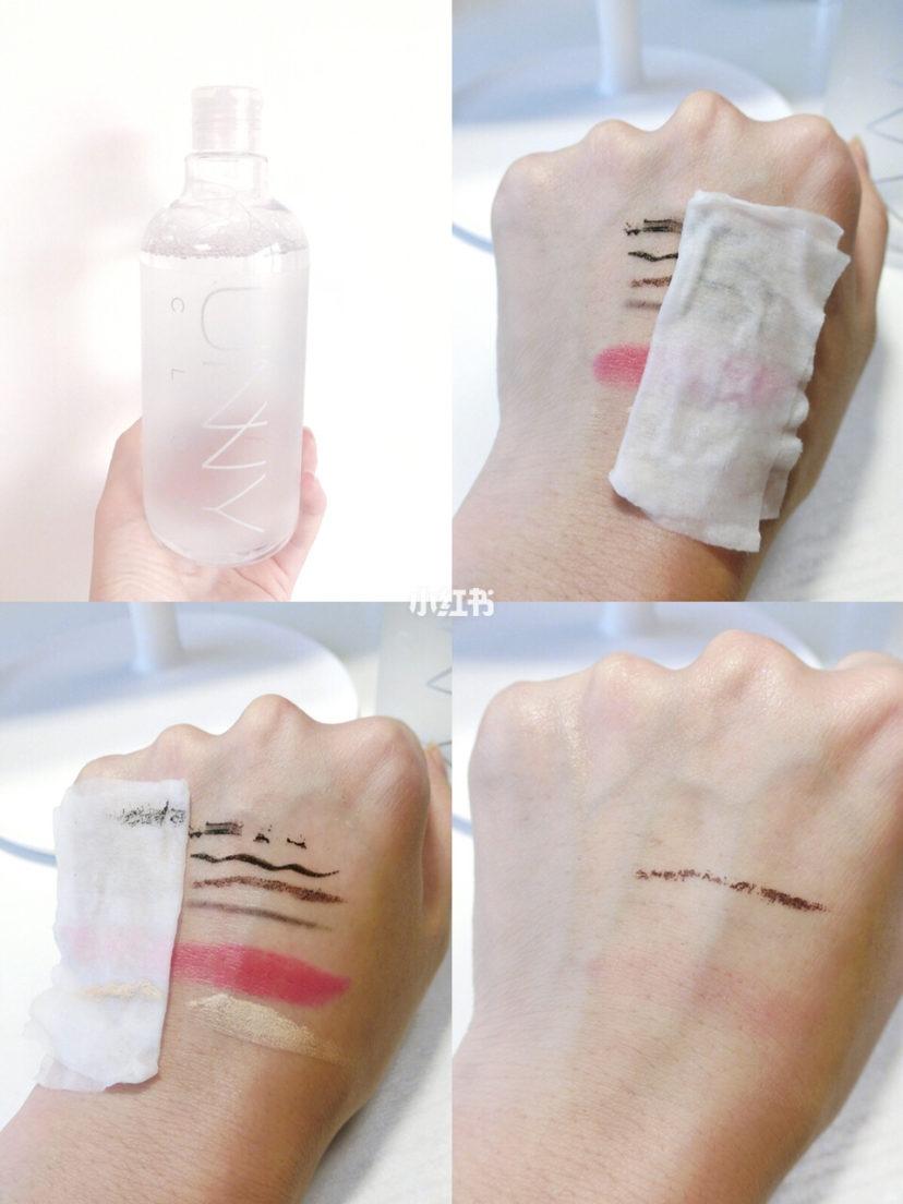 粉水:適合干皮,敏感?。ü娞?hào):小梨的護(hù)膚手記),溫和,用完皮膚不干,很清爽,不用二次清潔,但我習(xí)慣再用洗面奶洗臉,適合日常卸妝,防水比較好的眼線膠筆不好卸,口紅會(huì)留印。