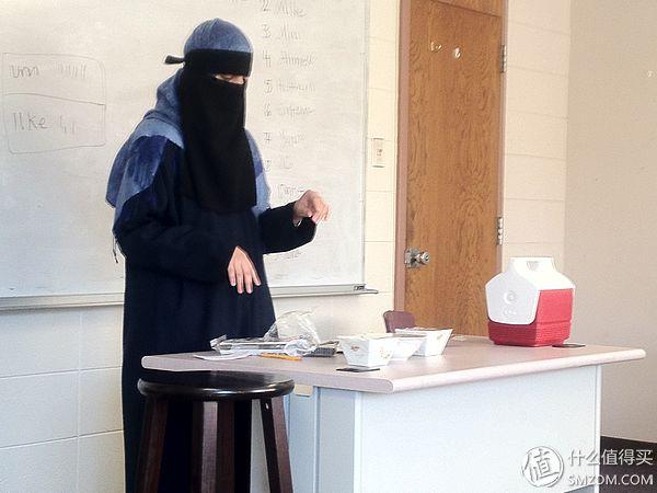 入學(xué)之前的英語(yǔ)課同學(xué)。沙特同學(xué),名字忘了,我還和她說(shuō)了幾次話,英語(yǔ)不錯(cuò),挺愛學(xué)習(xí),要不然也沒啥事干啊,在他們女人不允許工作,開車,不允許自由戀愛,成天逛商店和女性朋友開party也挺沒意思的。現(xiàn)在想起來(lái)她找我說(shuō)了幾次話,她丈夫或者父親沒用ak47把我打成篩子真是我的運(yùn)氣啊。閱讀老師,美國(guó)老頭,挺不待見她的,經(jīng)常不把作業(yè)試卷親自放到她桌子上,其他人老師都放到桌子上,宣稱我沒法只憑看人的眼鏡區(qū)分學(xué)生(我們班還有個(gè)蒙面的女生)。后來(lái)在大學(xué)里見過包頭巾的,也叫hijab,但是沒也沒見過這種包嘴的(niqab)。