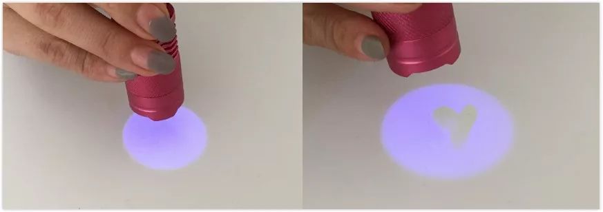 接著編編又用防曬霜涂抹了一個(gè)心型狀,紫外線居然不能穿透!