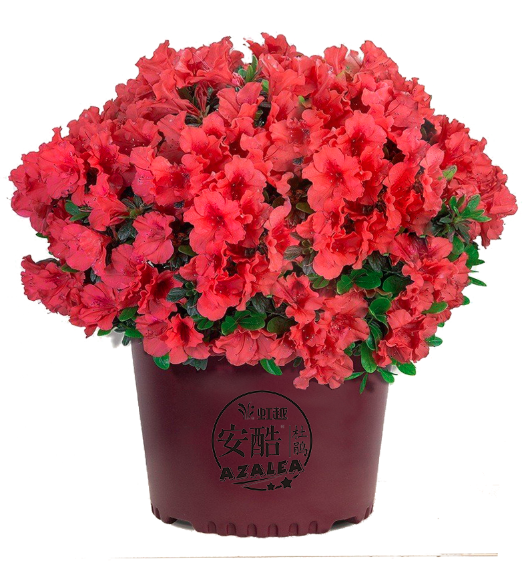 除了Encore 杜鵑的部分品種外,虹越還引進美國Jim berry苗圃Deja Bloom品牌的多季開花品種。安酷這個名字是虹越內(nèi)部員工取的,取“可以安然度過酷熱的夏天和冷酷的冬天”之意。早在2016年9月,虹越舉辦的第二屆美國園藝節(jié)上,虹越董事長江總就公布了安酷杜鵑這個品牌項目。2017年虹越試賣了一些品種,同時申請了安酷商標,后續(xù)又為安酷杜鵑設計了專用logo,彩標,花盆,宣傳冊等等。