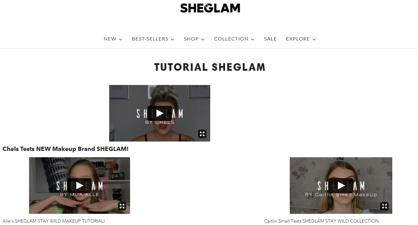 此外,SHEGLAM在獨(dú)立站設(shè)置了一個(gè)化妝教程板塊,用戶可以看到完整的美妝教程視頻,有促進(jìn)了用戶的購(gòu)買轉(zhuǎn)化。