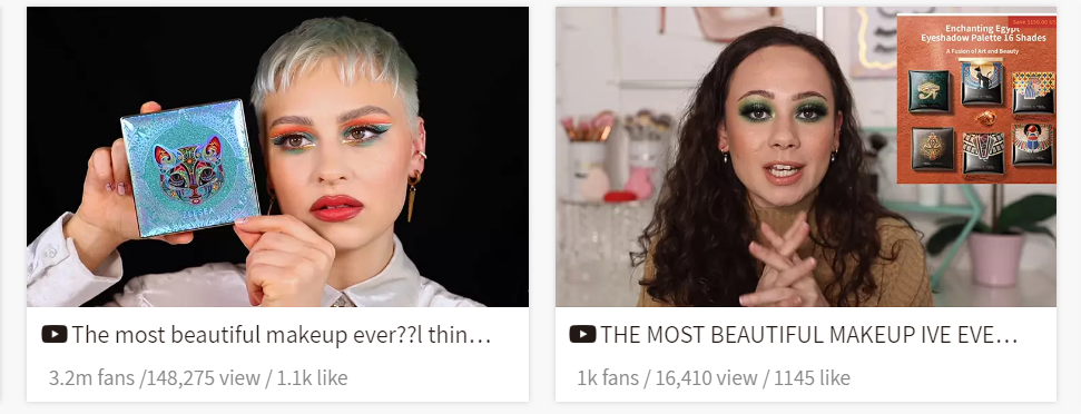 在內(nèi)容創(chuàng)作方面,SHEGLAM長(zhǎng)期與幾位歐美博主進(jìn)行合作,在Instagram、TikTok、Youtube等渠道發(fā)布自己使用SHEGLAM美妝產(chǎn)品的妝容照片及視頻。YouTube上主要為產(chǎn)品測(cè)評(píng)視頻,TikTok則主要發(fā)布時(shí)長(zhǎng)10秒內(nèi)的妝容視頻。