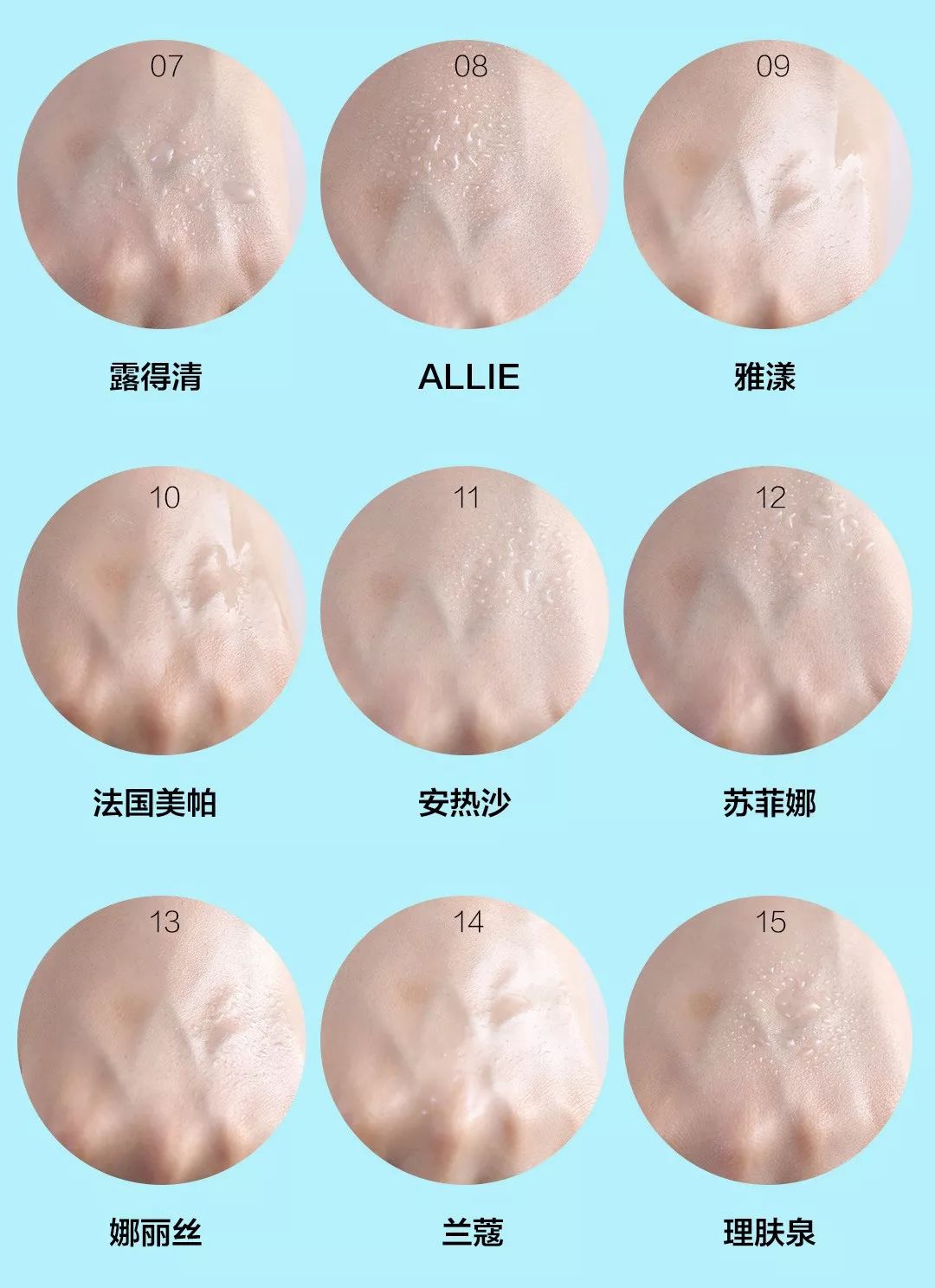 ?8.ALLIE:乳液質(zhì)地,柔滑易推開,肌膚很快吸收,無(wú)泛白,成膜很快,并且肌膚有的水潤(rùn)感,但無(wú)油光和粘膩感。