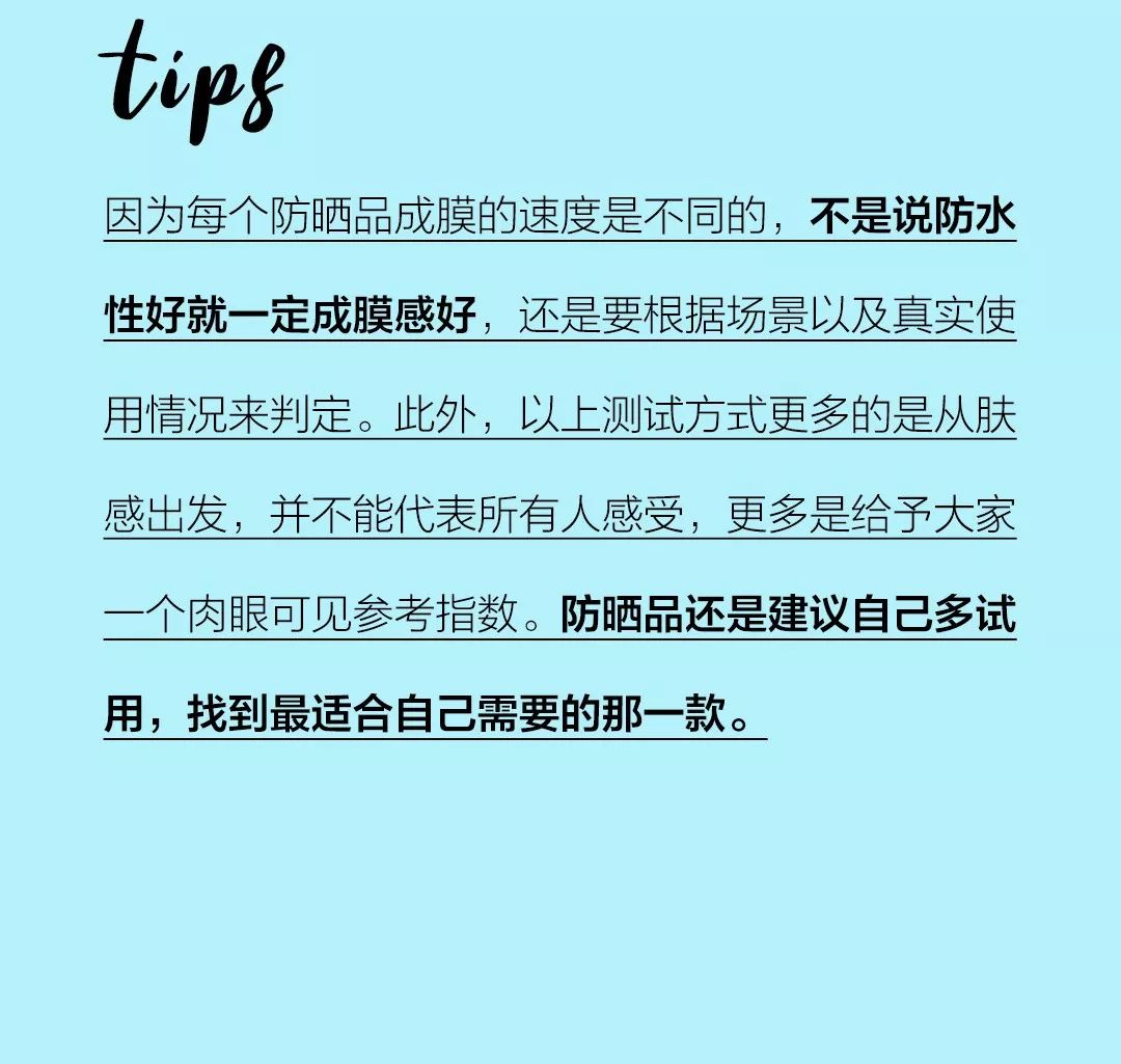 化學(xué)防曬不如物理防曬溫和,但是SPF可以做到很高,膚感可以做的清爽不黏膩(特別是在添加高含量酒精的情況下),適合正常皮膚(高酒精含量的適合大油皮)。抗水性也可以做到很好(具體要看配方,好是搖搖樂或者油包水),適合泳池、海邊使用。