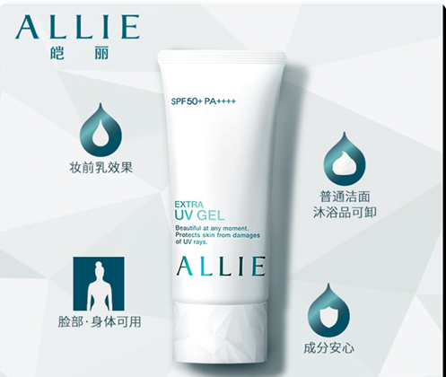 ALLIE是日本花王集團子公司Kanebo佳麗寶旗下防曬品牌,它主打高防護力,有一定的保濕作用,屬于物化結(jié)合的防曬,有添加酒精,質(zhì)地乳液狀,易涂抹,上臉會泛白,泛油光,膚感比較黏膩,不適合油皮。但是它很便宜,份量也足,我通常用它來涂抹身體。